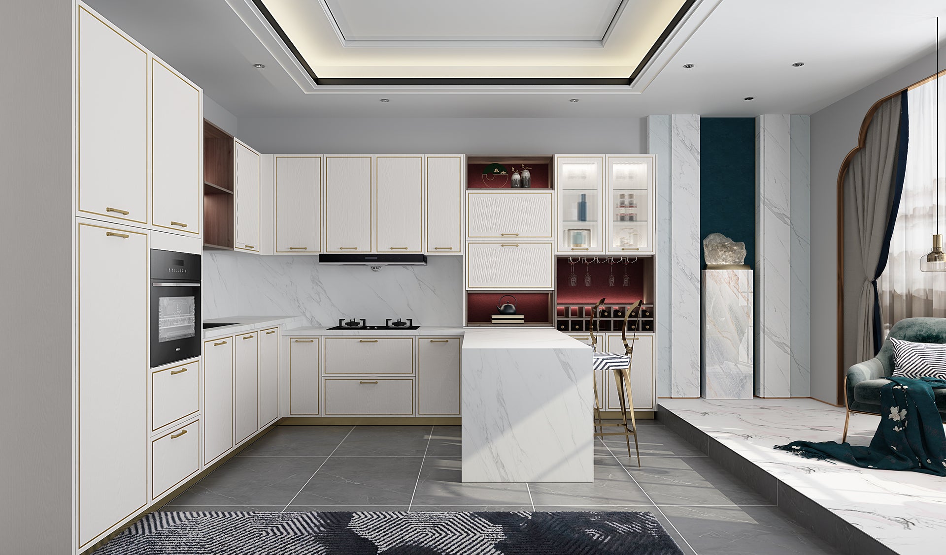 GoldenHome offers a variety of cabinet door panel options, including integrated panels, lacquer, thermofoil, and solid wood.