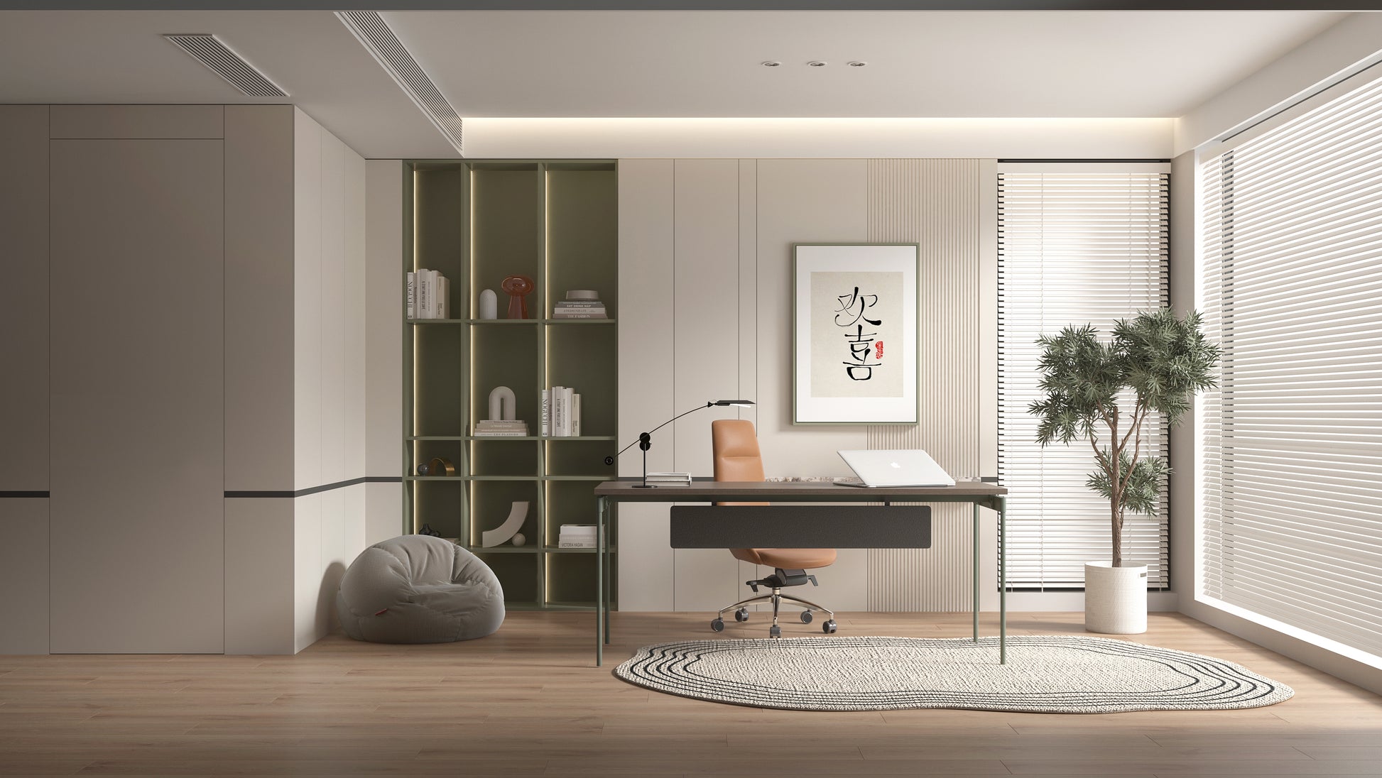 Create a natural and simple space atmosphere