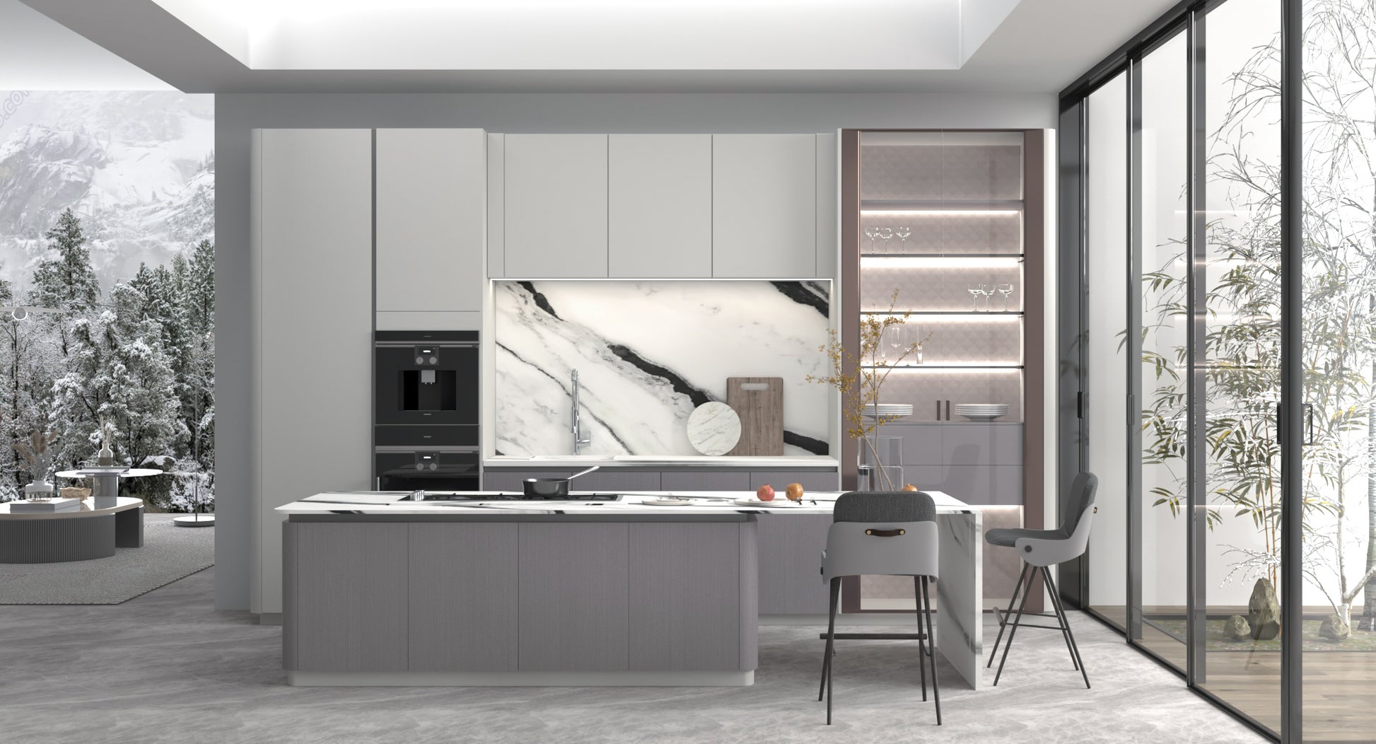 GoldenHome offers a variety of cabinet door panel options, including integrated panels, lacquer, thermofoil, and solid wood.